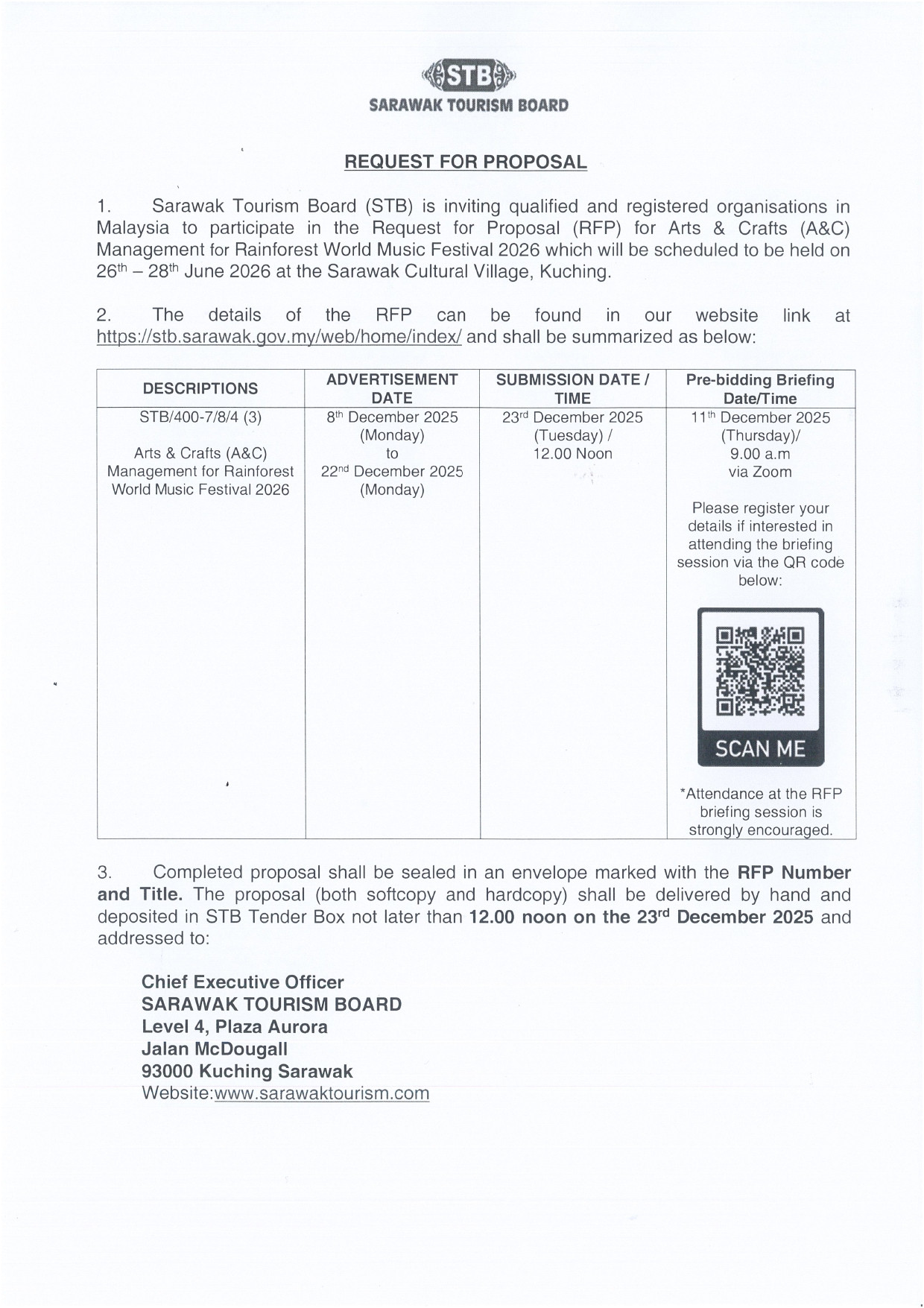 1) REQUEST FOR PROPOSAL : ARTS & CRAFTS MANAGEMENT FOR RAINFOREST WORLD MUSIC FESTIVAL 2026